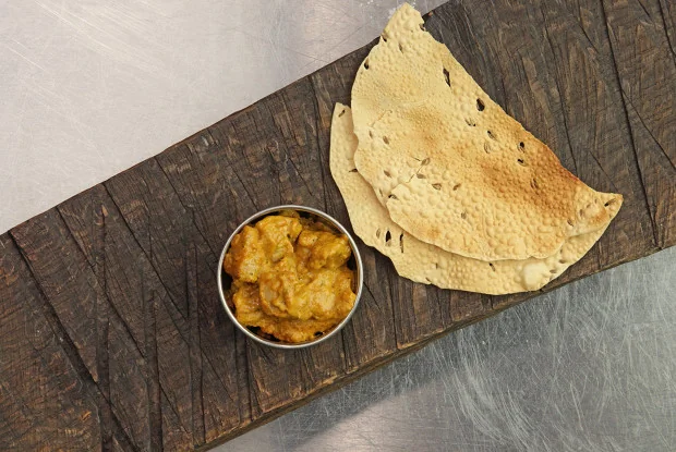 Куриные бедра Сливочное масло Кешью Репчатый лук Сливки 35%-ные Молоко Мит-карри-масала Сахар Соль Куркума Листья пажитника Томатное пюре Зелень Гарам-масала Основные блюда Индийская кухня Горячие закуски