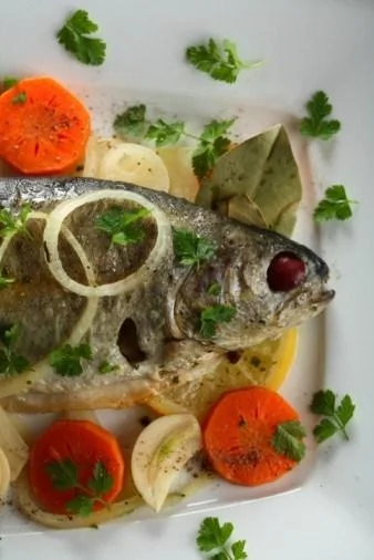 Ингредиенты для приготовления Рыба, приготовленная в винном наваре:
