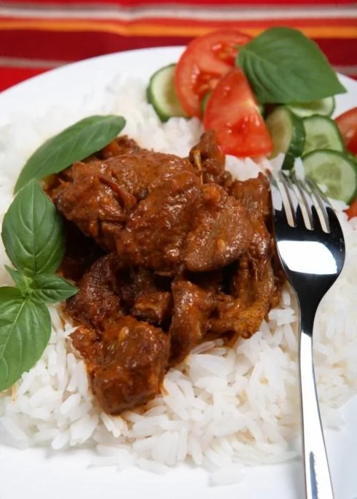 ШАГ 1 В кастрюле разогреть масло и по частям обжарить порезанную на кусочки по 4 см баранину. Добавить нарезанные кольцами лук и перец, измельченный чеснок, приправить, тушить 25 минут.