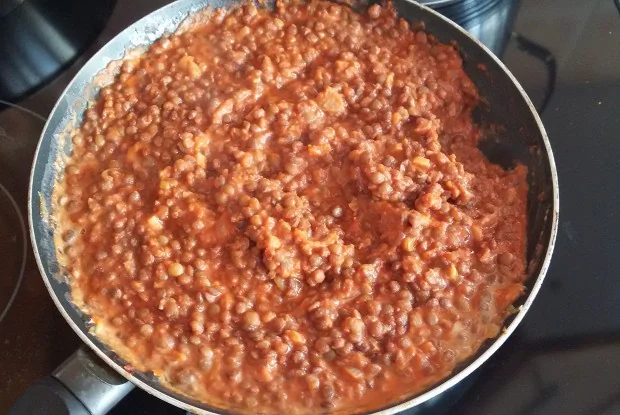 Чечевица с чесноком в томатном соусе