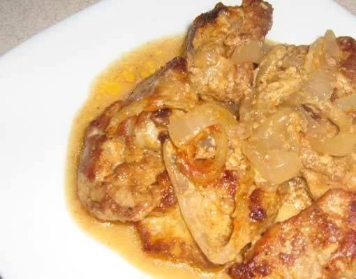 ШАГ 1 Мясо нарезаем на порционные куски и слегка отбиваем, лук режем полукольцами.