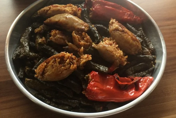 ШАГ 7 Когда все готово, сливаем воду в отдельную миску и выкладываем на блюдо нашу долму. Слитую воду можно смешать с заправкой из сумаха.