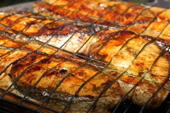 ШАГ 2 Взять 4 лососевых стейка, вымыть и хорошенько обсушить с помощью бумажного полотенца. Положить в маринад минимум на 60 минут. Через 30 минут после начала маринования стейки перевернуть.