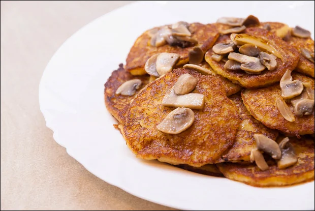 ШАГ 17 Готовые «бризольки» выкладываем на тарелку и украшаем отложенными заранее поджаренными грибочками.