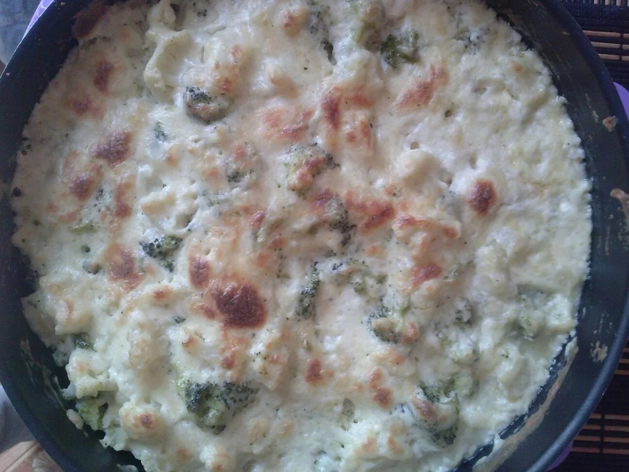 Цветная капуста и брокколи, запеченные под сливочным соусом