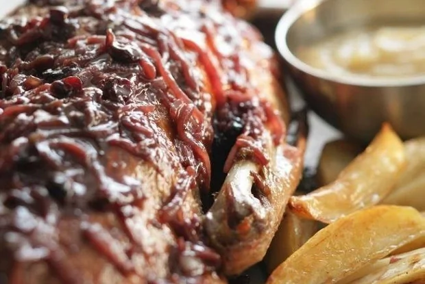 Гусь с соусом из портвейна и яблочным пюре