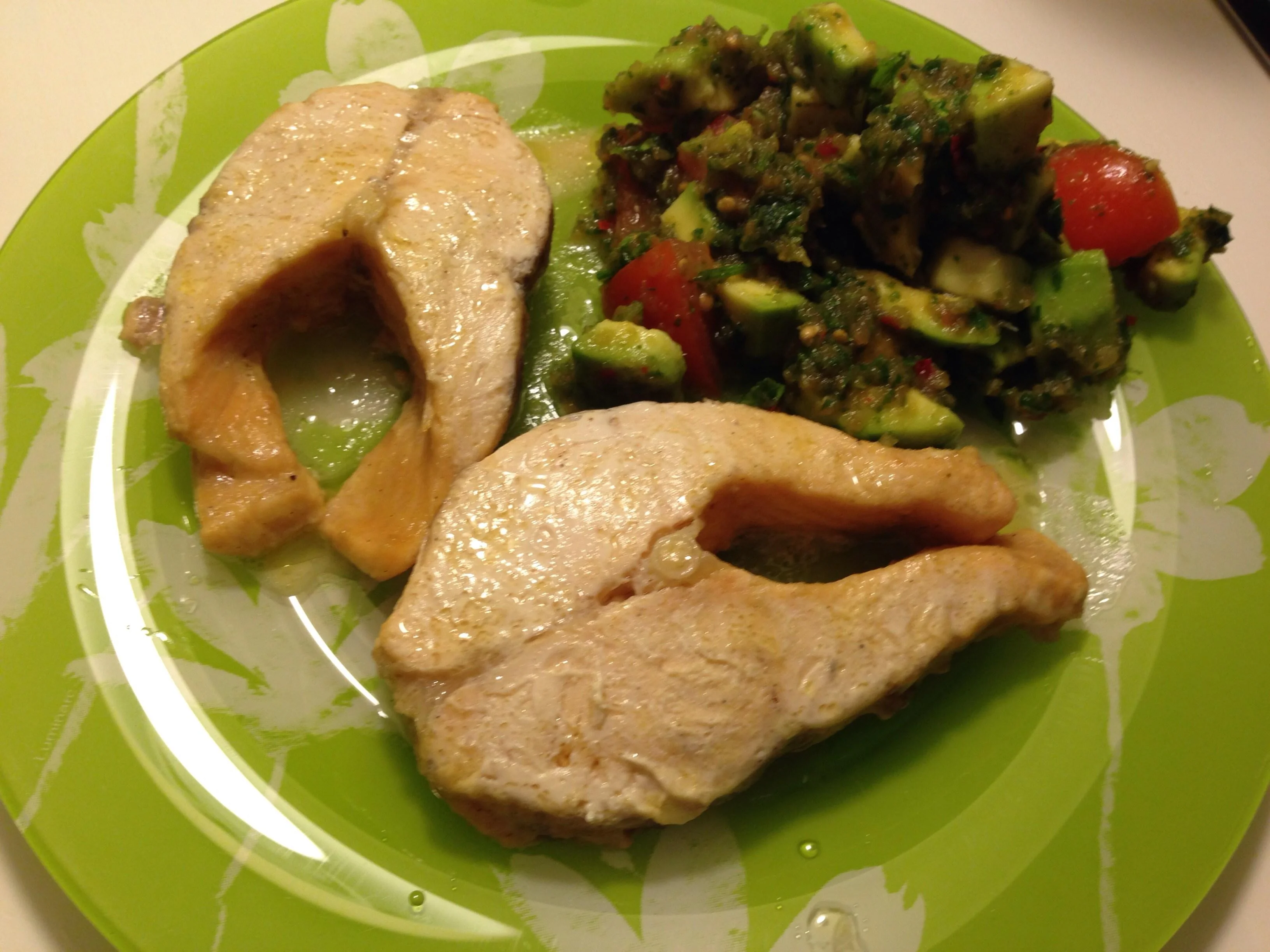 ШАГ 2 Лосось промыть и порезать на кусочки. Выложить в приготовленный маринад и поставить в холодильник на полчаса.