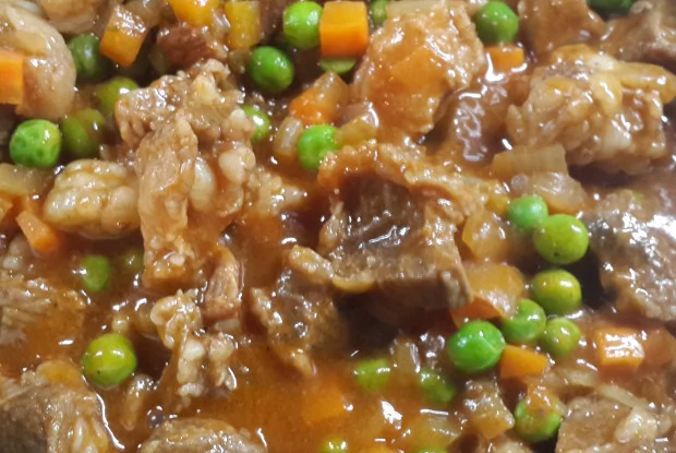 Гуляш из индейки с зеленым горошком