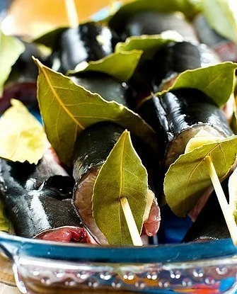 ШАГ 1 Для приготовления понадобится 4 крепких ровных ветки свежего лавра. Оборвите листья с лавровых веток за исключением одного–двух на концах.