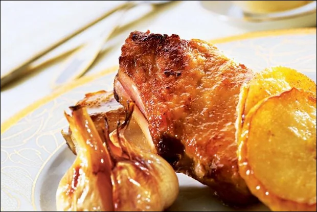 Свинина по-валлийски с чесночным фланом