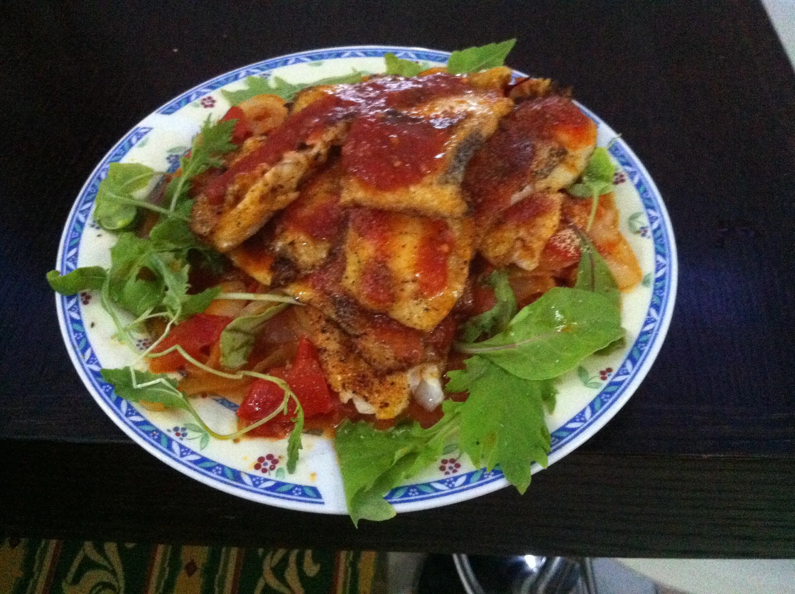 ШАГ 1 Гарнируйте рыбу отварным рисом и баклажанами или огурцами, жареными на сливочном масле с укропом.