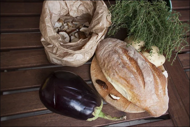 Ингредиенты для приготовления Запеченый пирог из картофеля, белых грибов и баклажанов: