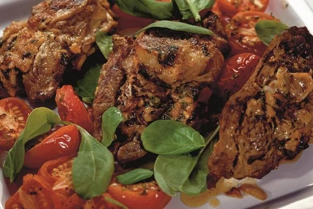 Баранина в йогуртовом маринаде с запеченными помидорами