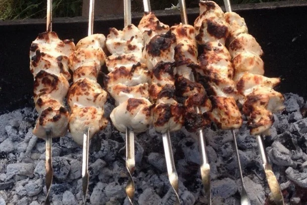 Шашлык из курицы с майораном на кефире и газировке
