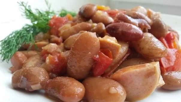 ШАГ 6 Добавить фасоль, соль и специи. Потушить под закрытой крышкой еще минут 5.