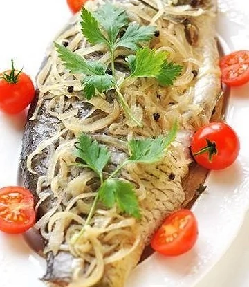ШАГ 10 Сверху карпа тоже покрыть луком и сбрызнуть оливковым маслом.