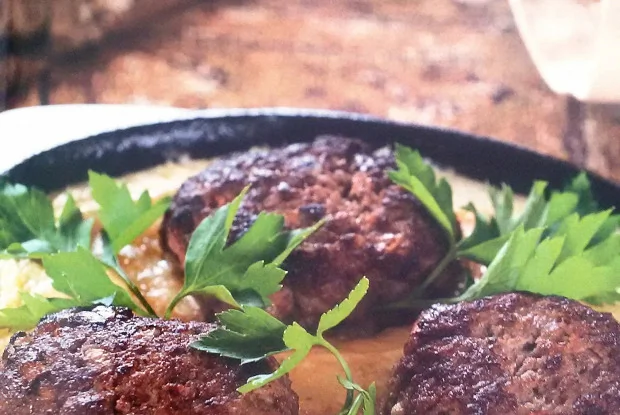 Баранина Репчатый лук Соль Молотый черный перец Топленое масло Куриное яйцо Петрушка Курдючный жир Основные блюда Французская кухня Биточки