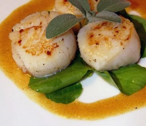 ШАГ 11 Разложите гребешки с лаймовым маслом на подогретые тарелки и украсьте разрезанными стручками ванили.
