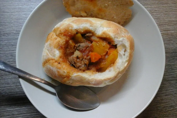 Суп-гуляш в хлебе