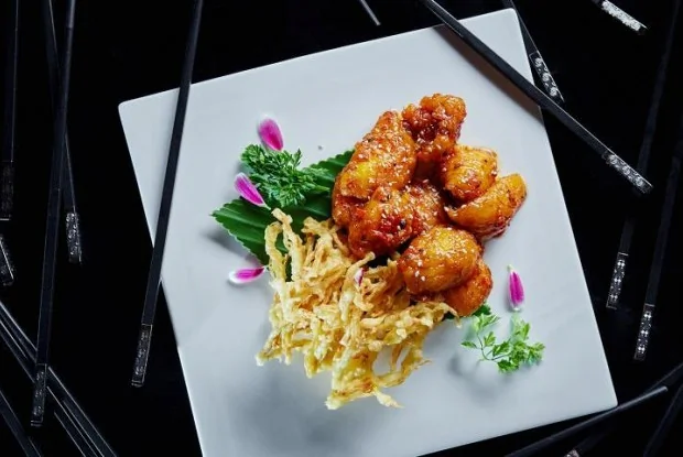 ШАГ 3 Подать на банановом листе с гарниром в виде грибов иноке, обжаренных во фритюре.