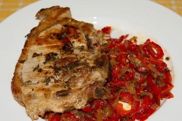Ингредиенты для приготовления Свиной стейк на косточке с жареным перцем: