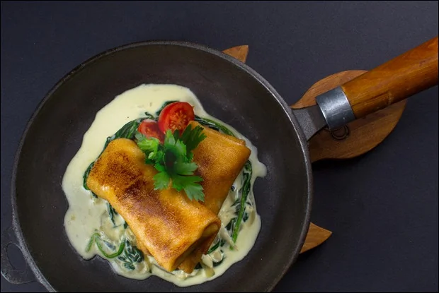 Ингредиенты для приготовления Блины с мясом и сливочно-шпинатным соусом: