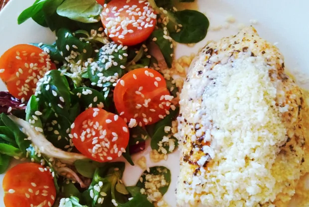 ШАГ 3 Готовое, слегка остывшее филе посыпать пармезаном.