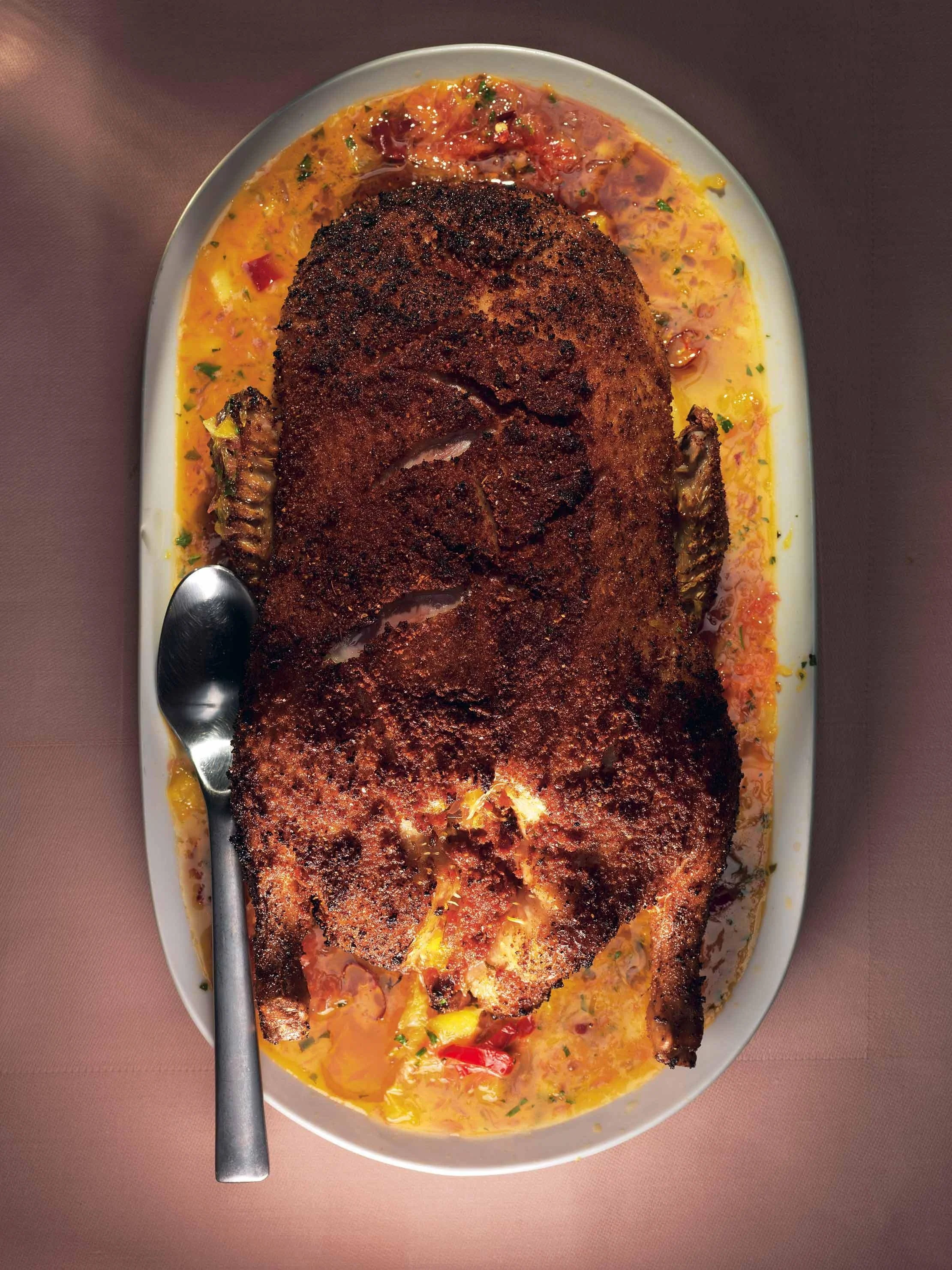 Утка в панировке из паприки с имбирно-цитрусовым соусом