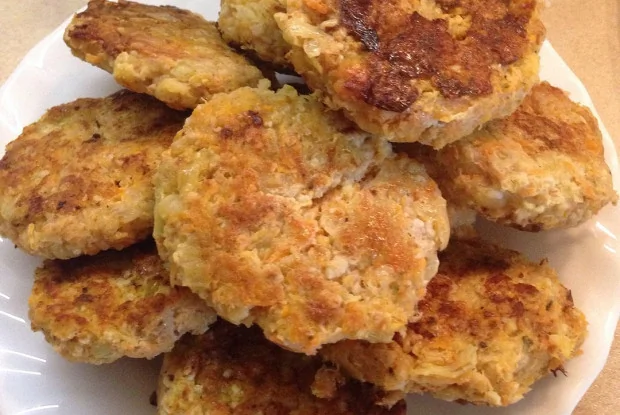 ШАГ 5 Сформировать котлетки и жарить на а/п сковороде, слегка смазанной оливковым маслом, с двух сторон (после переворачивания на вторую сторону жарить под крышкой).