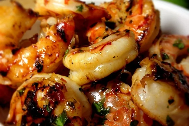 ШАГ 4 На хорошо разогретую сковороду положить креветки, полить соусом и перемешать.