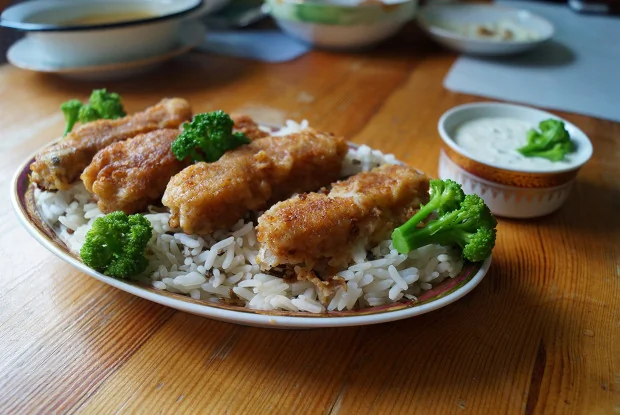 ШАГ 3 Макать рыбу по очереди в каждую тарелку и выкладывать на сковороду. Жарить до готовности.