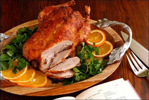 ШАГ 9 Перед подачей на стол утку разрезать на порционные куски и полить соком мандарина или апельсина.