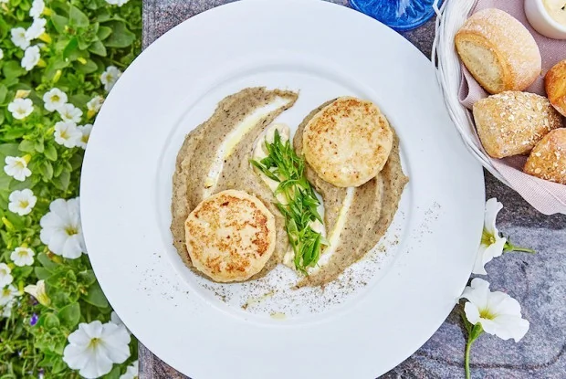 ШАГ 6 На тарелку выложить трюфельное пюре и две котлеты. Посыпать рубленым зеленым луком.