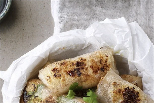 Конвертики из рисовой бумаги с фаршем и картофелем