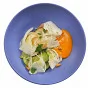 ШАГ 2 Кабачки нарезать тонкими кольцами, чили мелким кубиком, чеснок так же мелко. Фенхель нарезать тонко и положить в ледяную воду.