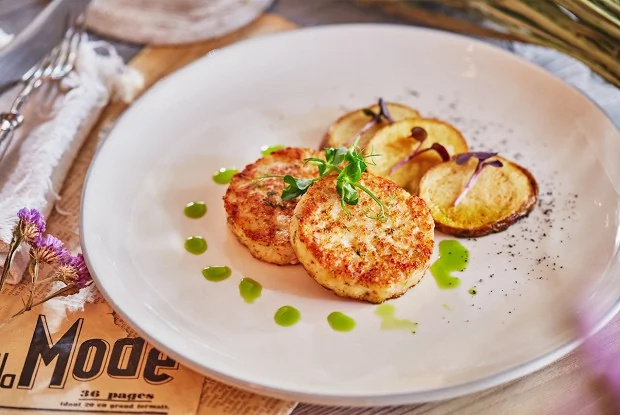 Крабовые котлеты с печеным картофелем