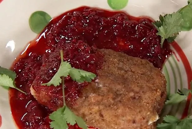 Телятина а-ля кордон блю с яблоками и вишневой сальсой