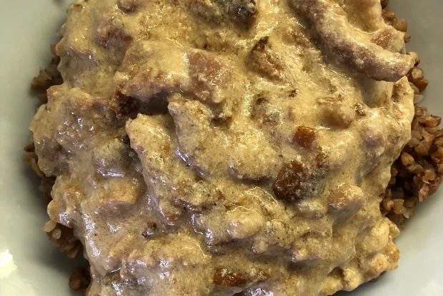Ингредиенты для приготовления Бефстроганов из телятины с грибами в мультиварке: