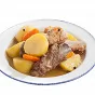 ШАГ 3 Картофель очистить, разрезать на две-четыре части, если он крупный, или оставить целым. Нарезать лук средним кубиком, а морковь нарезать крупно. Обжарить на растительном масле лук, добавить к нему морковь и жарить еще 1–2 минуты. Добавить зажарку и картофель в кастрюлю к мясу. Туда же бросить лавровый лист, гвоздику и перец, посолить. Накрыть и тушить еще 30–40 минут, до готовности картофеля.