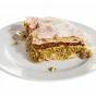 ШАГ 7 Круглую форму для выпечки смазать растопленным сливочным маслом, выложить несколько листов теста фило, оставляя свисать края. Смазать его маслом. Выложить курицу, накрыть ее листом теста, смазать тесто маслом. Вторым слоем выложить луковый омлет, также накрыть его тестом и промазать маслом. Последний слой — миндаль, повторить процедуру с листом фило и маслом. Закрыть пирог свисающими краями теста, смазать их маслом. Сверху уложить еще пару листов теста, заправить края в форму, снова промазать маслом. Выпекать при 180 градусах в течение 30 минут.