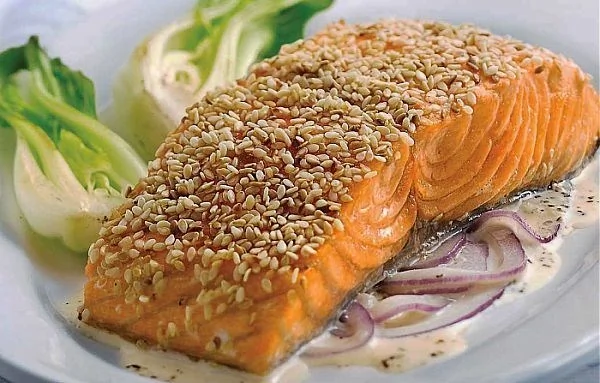 ШАГ 4 Кусочки рыбы макать в семена кунжута и обжаривать на сковороде по 2–4 минуты с каждой стороны.
