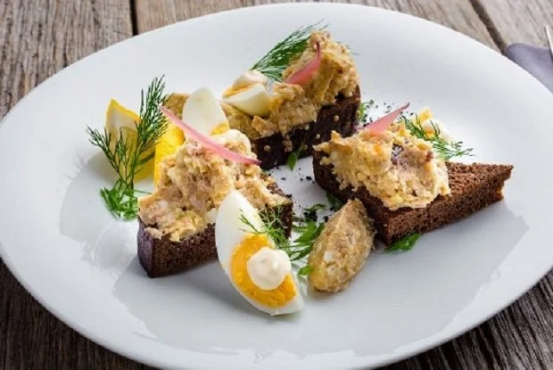 ШАГ 7 Бородинский хлеб обжарить, на него выложить форшмак.