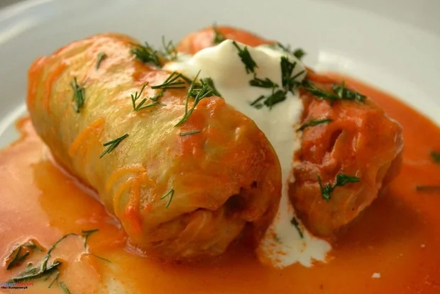 ШАГ 4 1 кочан молодой капусты пробланшировать, в каждый лист положить начинку, свернуть и закрепить шпажкой.