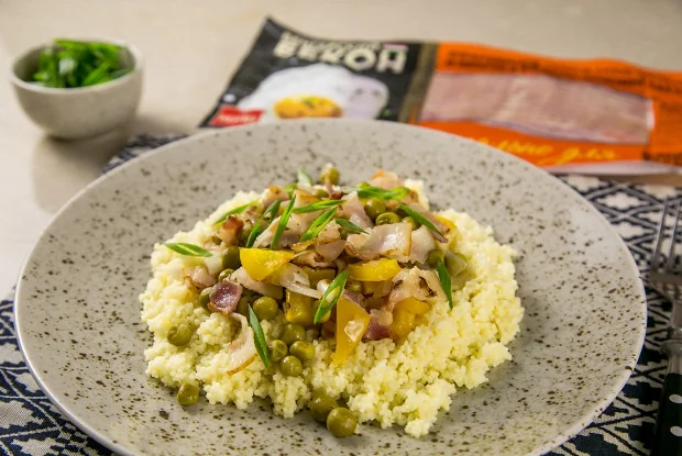 Кускус с овощами и беконом