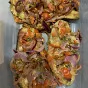 ШАГ 3 Смешать нарезанный полукольцами лук, измельченный чеснок, 30 мл оливкового масла, сушеную мяту, соль и перец, перемешать руками. Так лук пустит сок и немного размягчит мяту. Затем добавить нарезанные небольшими кубиками помидоры и рубленую петрушку, перемешать.