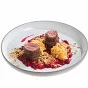Телячья вырезка с пюре из айвы и брусничным соусом
