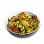ШАГ 3 Разогреть вок на сильном огне, добавить немного масла и обжарить свинину до золотистой корочки. Затем переключить огонь на средний, отодвинуть мясо в сторону, а на дно вока положить соус тобадзян, прогреть в течение 30 секунд, добавить чеснок, перемешать его с пастой и жарить еще 30 секунд.