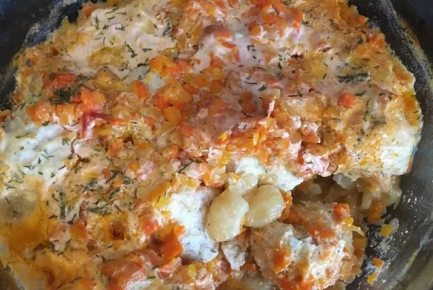 ШАГ 4 Залить все в форме соусом и поставить в духовку. Блюдо будет готово примерно через 30 минут.