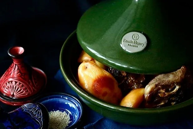 ШАГ 5 Накрыть крышкой и поставить на средний огонь. Дать прокипеть минут 15, когда жидкость начнет бурлить и пытаться сбежать из тажина, поставить на очень слабый огонь и оставить еще на 1,5 часа.