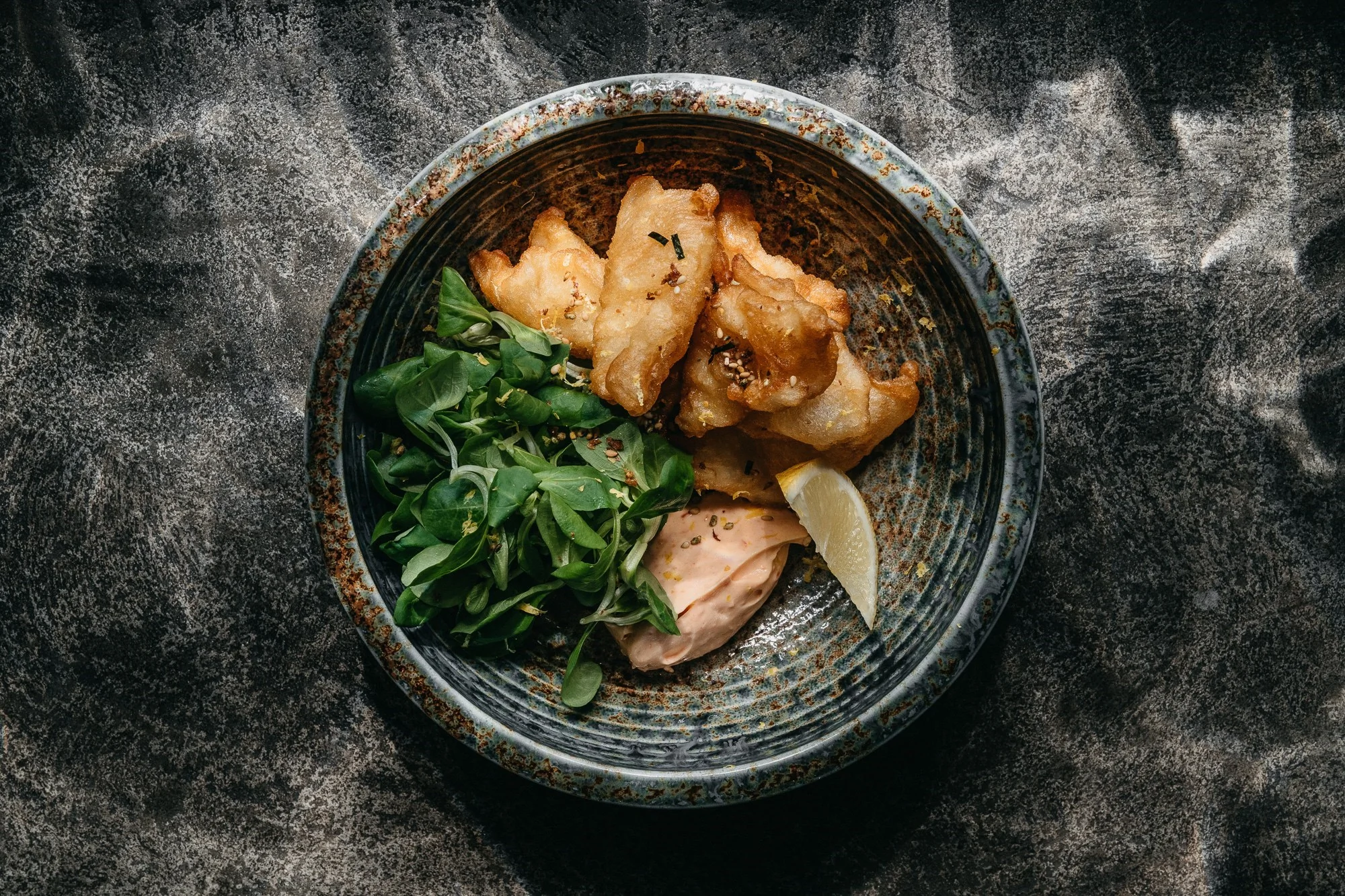 Ингредиенты для приготовления Кальмар в темпуре с зеленым салатом: